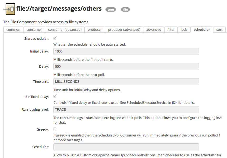 文件使用者现在支持使用幂等的读取锁定模式。这允许安全地让集群文件消费者为相同的文件竞争共享文件系统,以确保由选择的幂等存储库控制的独占读取锁定,例如使用 hazelcast。
