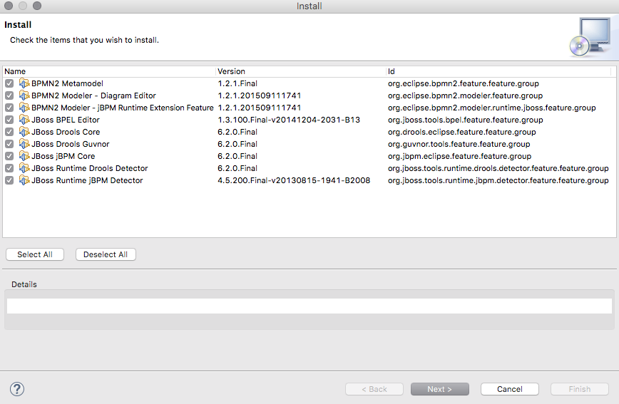 这将显示集成堆栈工具产品,我们将选择 JBoss 业务流程和规则开发 。