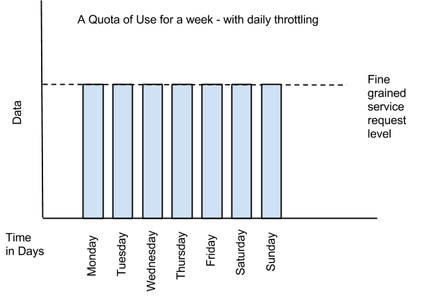 相反,如果我们使用更细粒度的策略来增加每周配额,我们就可以保持服务在一周内响应请求的能力: